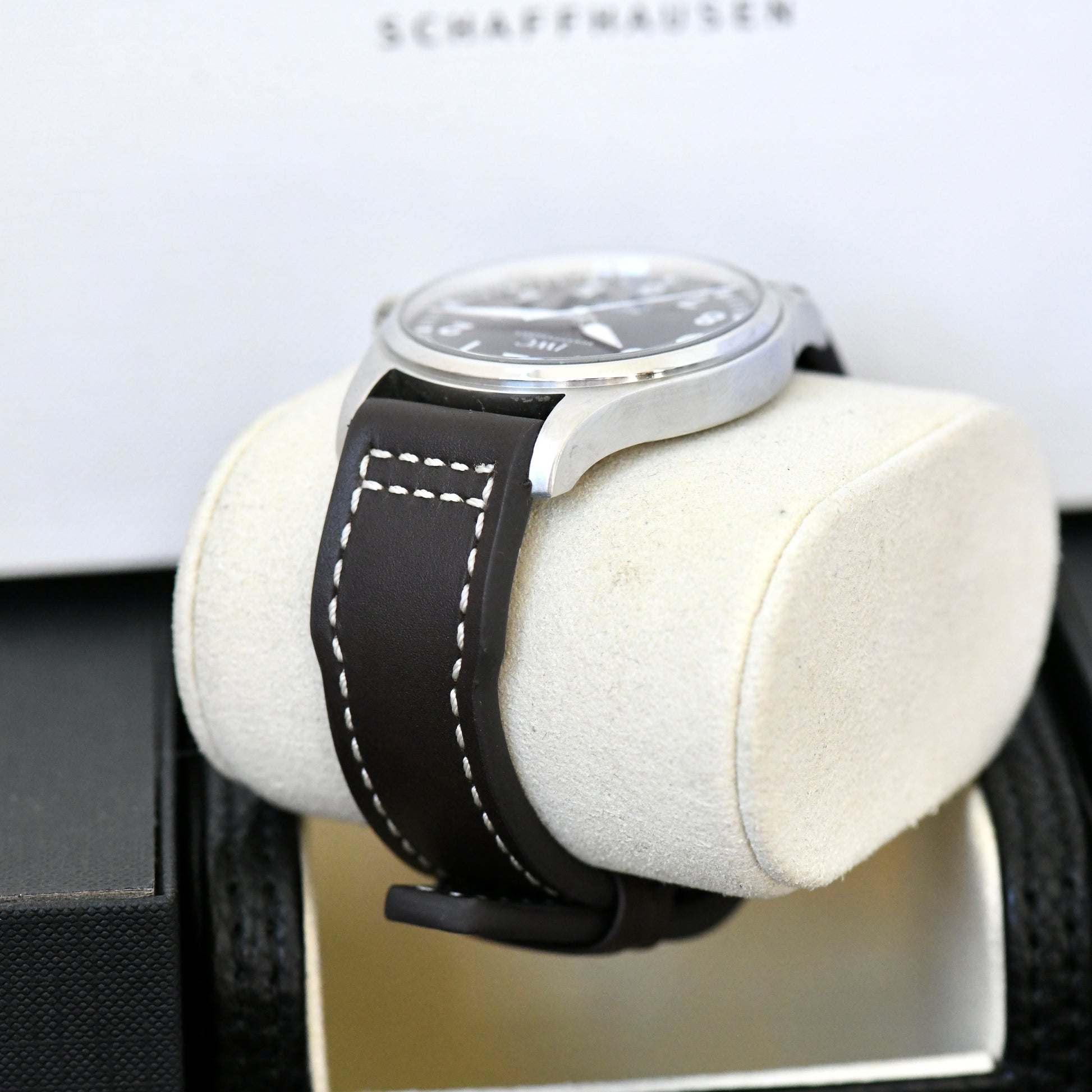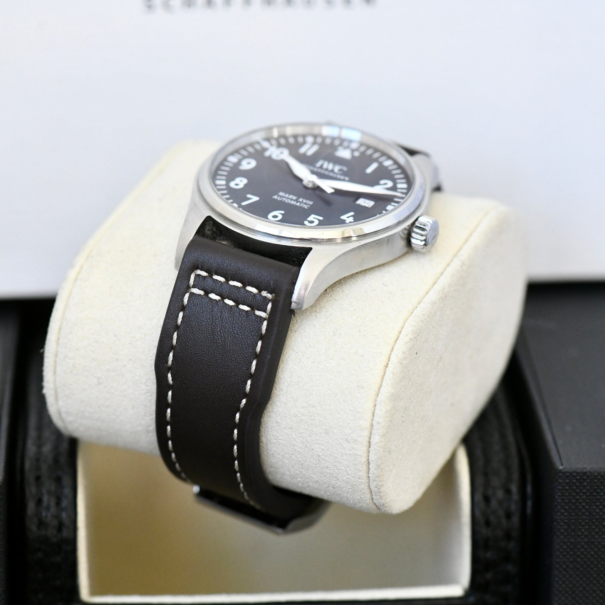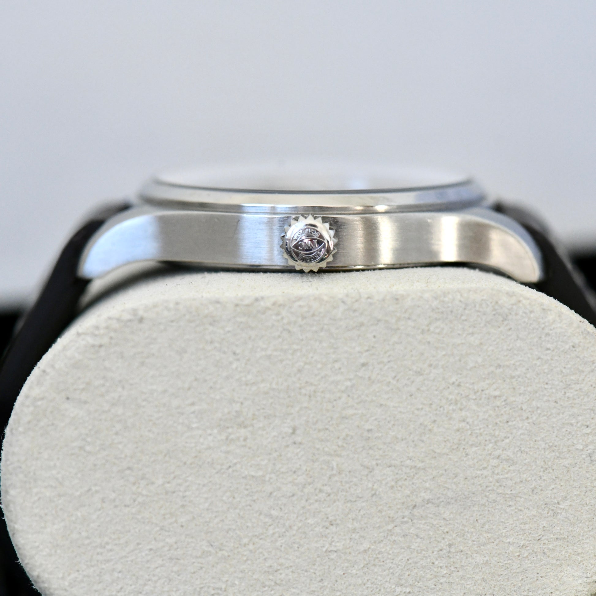 Fitted to a new RIOS1931 Leather strap which matches the original in design and quality.