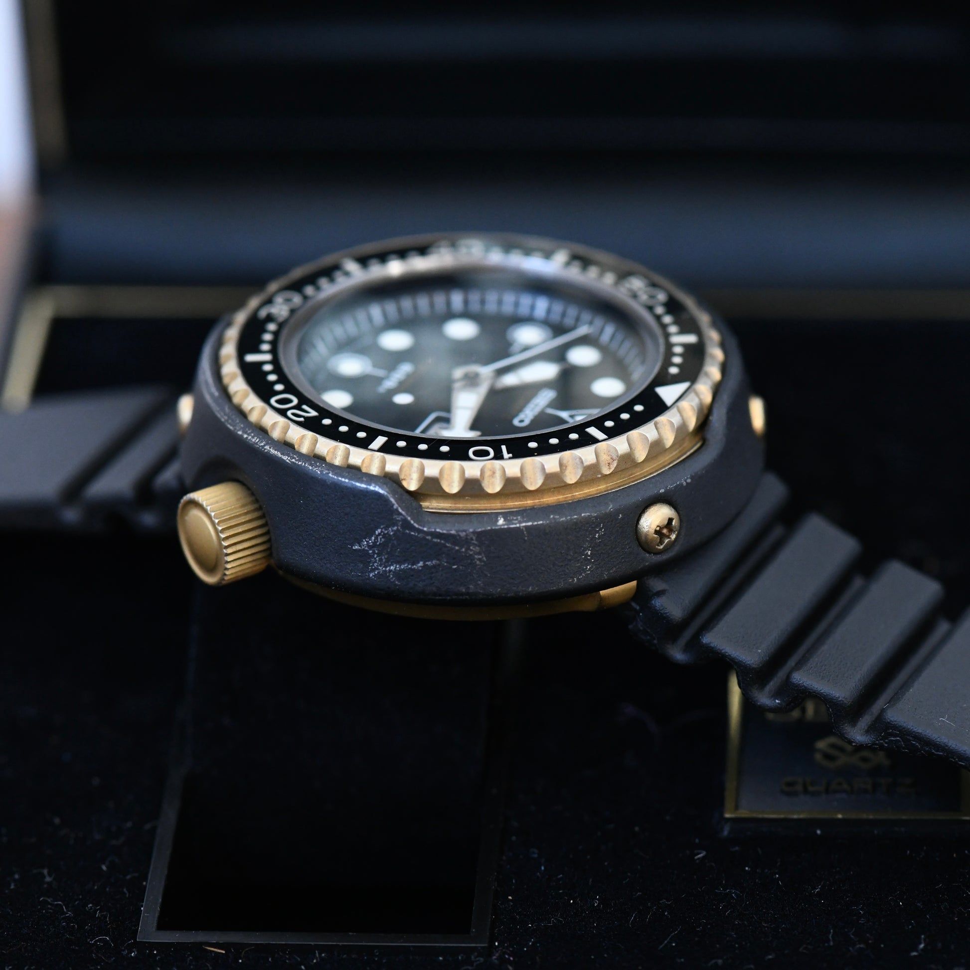 The original and great Quartz Tuna from Seiko. Super rare find with box and papers. Dated 18/10/1982
